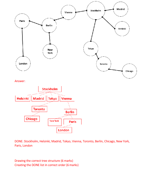 d) Using Breadth First Search (BFS), draw a tree that visualises travel from Stockholm to